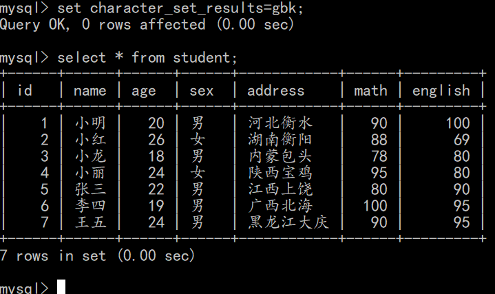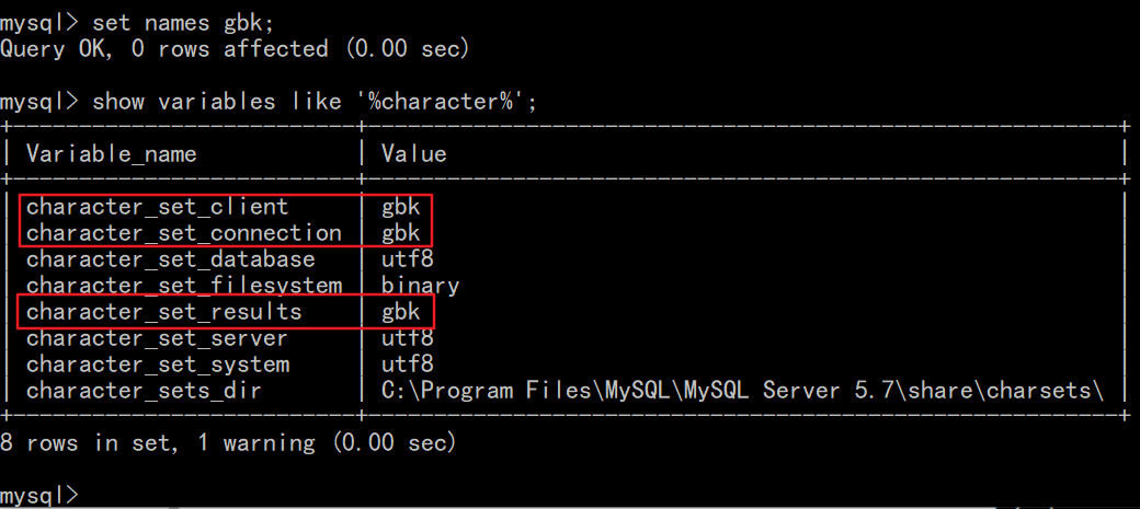1 | set character_set_client=gbk; |