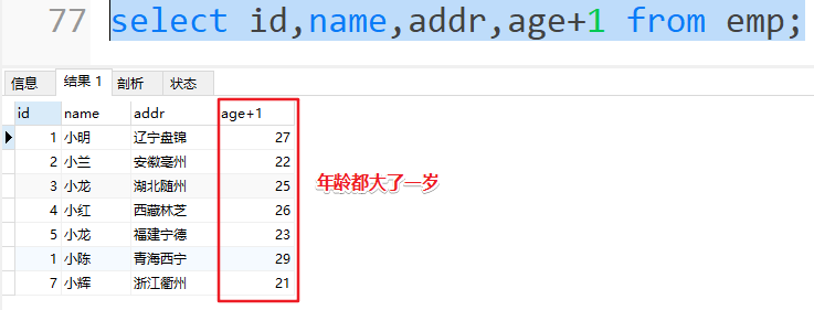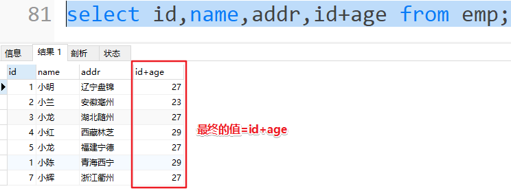 1 | SELECT 列名1 + 固定值 FROM 表名; |