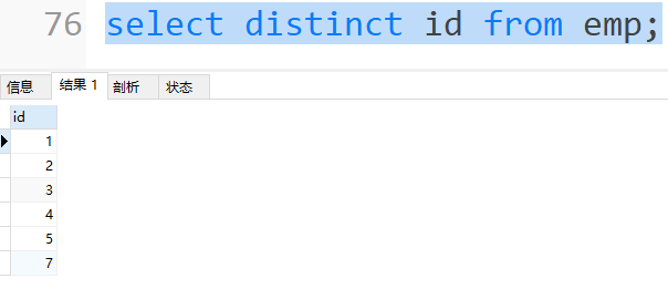 1 | SELECT DISTINCT 字段名 FROM 表名; |