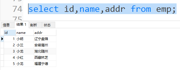 查询指定列的数据,多个列之间以逗号分隔