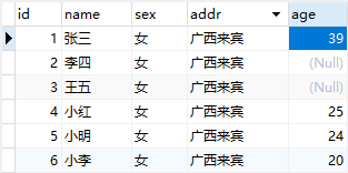| 更新记录(改) | UPDATE 表名 SET 字段名=值 WHERE 条件表达式 |