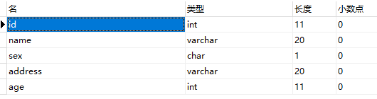 创建一个学生表,包含如下列: