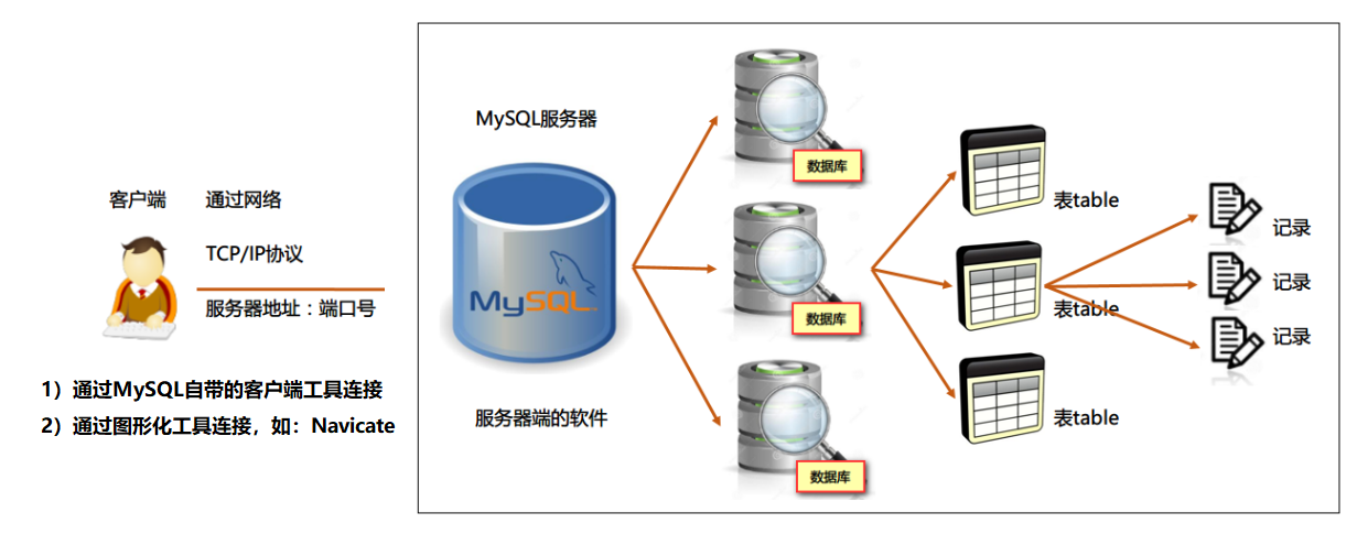 我们安装好的MySQL是一个数据库管理系统,英文:DBMS(Database Management System),是一个服务器端的软件