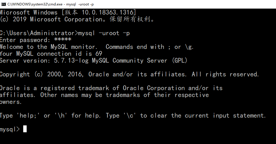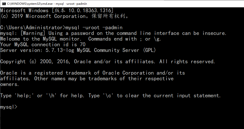 1)登录方式一:打开cmd命令窗口: